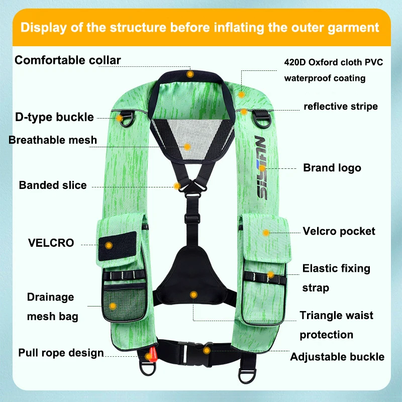 Een reddingsvest dat automatisch opblaast zodra het in aanraking komt met water. Geschikt voor volwassenen tot 150 kg. Compact genoeg om de hele dag te dragen zonder hinder — ook tijdens actief werk aan boord.